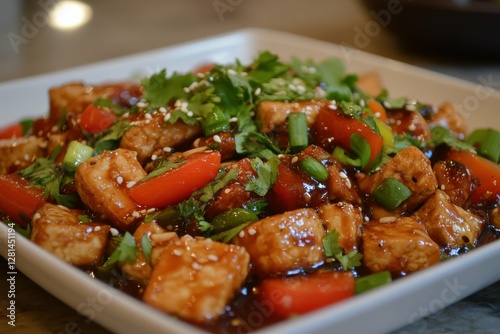 Tofu Stir Fry. Homemade Asian Dish with Ginger and Honey for a Delicious Dinner