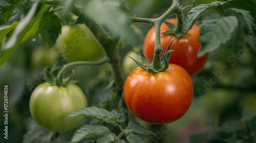 Tomato plant with both green and red tomatoes on the same vine