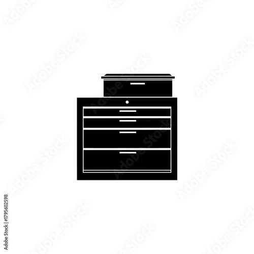 tool, chest, icon, silhouette, vector, toolbox, cabinet, storage, organiser, garage, workshop, mechanic, handyman, equipment, drawer, graphic, design, symbol, black, isolated, simple, flat, modern, metal, steel, rolling, cart, tool, wrench, hammer, screwdriver, craftsman, professional