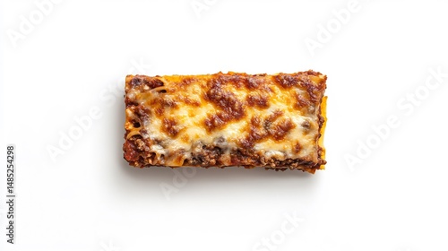 Top down view of traditional Italian Lasagna white background layers of pasta meat sauce bchamel cheese perfectly styled culinary branding and editorial use cut out on isolated transparent background