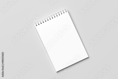 Top view Blank realistic spiral bound notepad mockup of a spiral notebook isolated on a minimalist gray background.