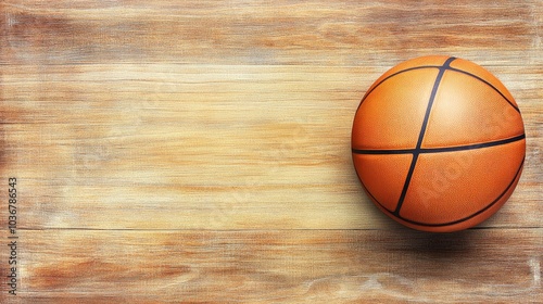 Top view of a brightly marked basketball court with maple flooring, half-court logo, and crisp boundary lines, ready for action.