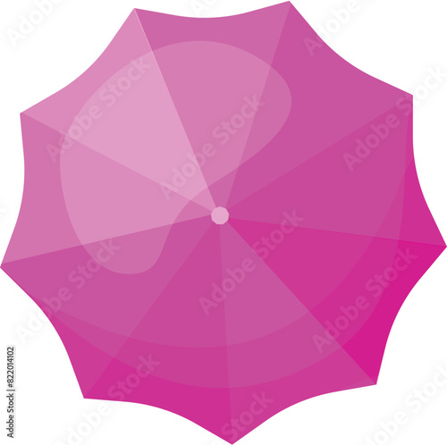 Top view of a stylish and modern pink umbrella vector illustration with a minimalist, flat design and vibrant, bright colors, perfect for the rainy season and outdoor protection