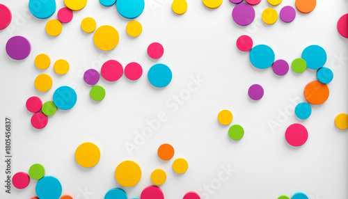 top view of assorted colorful round geometric shapes with soft shadows scattered on a plain surface representing diversity and variety in design.