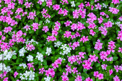 Top view of pink and white flowers background