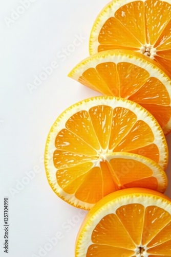 Top view of tangerine slices arranged neatly on a white background, ripe, arrangement, white background