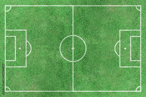 Top view stripe grass soccer field. Green lawn with white lines pattern background.