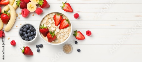 Top-down view of a white desk with a gridded lined notebook and various other supplies. empty space available for copying or writing.