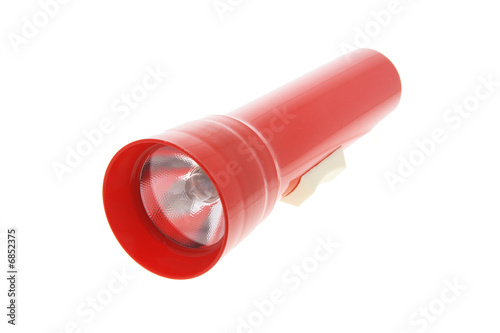 torch, flashlight, light, to illuminate, illumination, glow, hand-held, red color, white background, cut-out, cut-out, isolated, object, still life