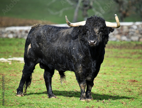 toro español con grandes cuernos