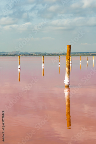 Torrevieja Pink Lake at Natural Park de Las Lagunas de La Mata e Torrevieja, Alicante Spain, vertical