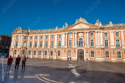 toulouse, capitol building, place, city, rose, brick, centered, cross, city hall, city hall, site, historical building, tour tourism, visit, couple, friends, room, illustrious, france, europa, underground, shopping, coffee, bar, terraced, flag