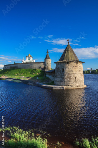 cathedral, kremlin, river, russia, ancient, blue, castle, church, cloud, coast, evening, famous, forest, fort, fortress, historic, history, island, loophole, old, protection, pskov, russian, shore, sky, stone, summer, tour tourism, tower, travel, tree, vane, wall, water, white