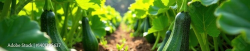 Towering zucchini vines laden with immature fruit, thriving in sunny garden , photography, summer