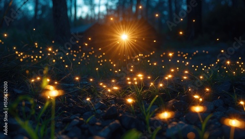 glow, luminescence, evening, dusk, bioluminescence, natural light, magic, enchantment, nightscape, shimmering, sparkling, delicate, ephemeral, tranquil, peaceful, scenic, twilight, serenity, mysterious, wildlife, environmental, copy space, night scene, natural phenomenon, free space, nobody