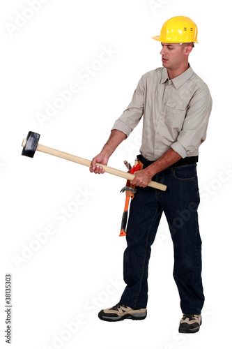 Tradesman holding a mallet