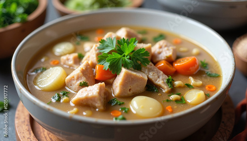 Traditional Belgian Waterzooi with Chicken, Potatoes, and Fresh Parsley