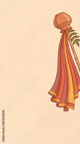 Traditional Gudi illustration for Gudi Padwa festival with copy space