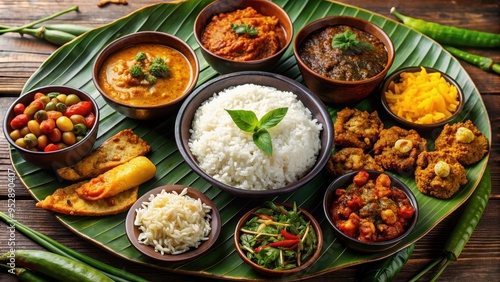 Traditional Sri Lankan rice and curry dish with a variety of curries, sambol, and pickles , Sri Lankan, cuisine, rice, curry