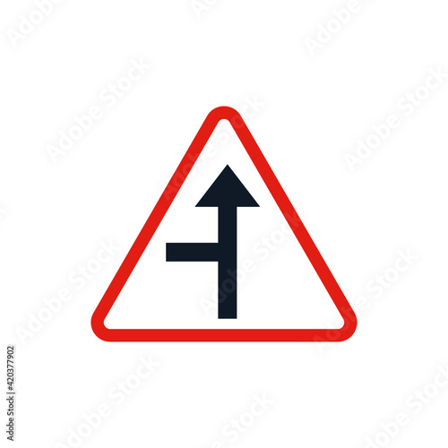 Traffic sign Side road in solid black flat shape glyph icon, isolated on white background