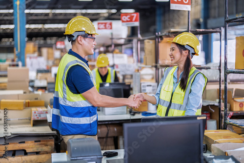 Trainee worker in large depot storage warehouse appreciated thank you to trainer at cashier counter