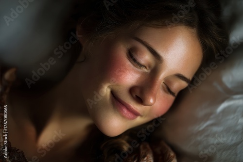 Tranquil Moments: Portrait of a Smiling Woman at Peace While Sleeping Soundly