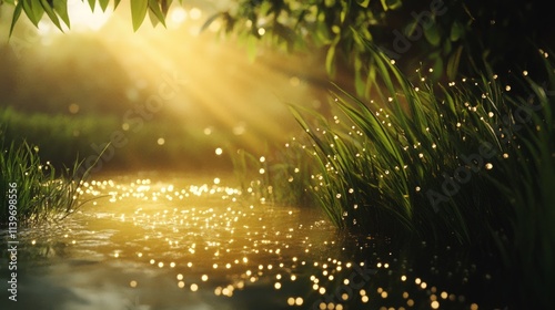 tranquil, morning, scene, dew-drop, grass, blade, sunlight, nature, serenity, peaceful, landscape, water, droplet, greenery, environment, beauty, freshness, calm, picturesque, bright, shimmering, vibrant, flora, sunshine, mist, natural, wildlife, soothing, stream, creek, closeup, bokeh, texture, natural light, morning dew, lush, botanical, scenic, soft focus, earthy, flora and fauna