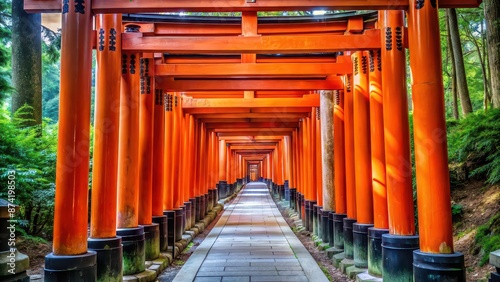 Tranquil path under vermillion torii gates at Fushimi Inari Shrine in Kyoto , Sunset, glow, Kyoto, Fushimi Inari Shrine