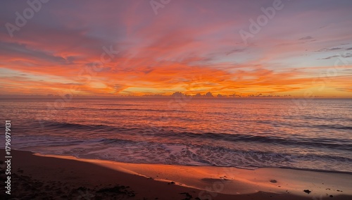 serene, coastal, scene, sunset, vibrant, colours, sky, ocean, beach, nature, calmness, evening, horizon, calm, water, sun, cloud, landscape, mood, picturesque, vacation, travel, beauty, warm, peaceful, scenic, yellow, orange, pink, indigo, summer, dusk, silhouette, shore, environment, illuminated, atmospheric, panorama, golden hour