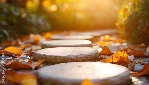 Tranquil Stone Walkway in the Serene Garden Path Amidst Beautiful Blooming Flowers