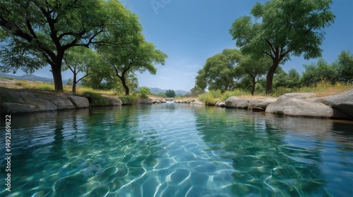 stream, water, river, nature, landscape, tree, green, turquoise, blue, sky, rock, calm, tranquil, peaceful, serene, summer, daytime, sunny, bright, clear, scenic, view, photo, image, photo, picture, background, wallpaper, travel, vacation, holiday, environment, eco, fresh, clean, pure, natural, beauty, marvellously, amazing, gorgeous, stunning, breathtaking