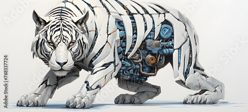 transform white tiger-shaped nano robot, ai generative