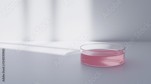 Translucent Pink Liquid Culture in Glass Petri Dish in Laboratory Setting