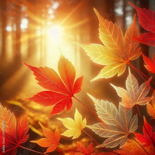 Transparent bright autumn leaves