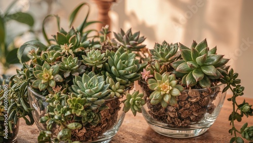 Transparent containers showcasing succulent plants