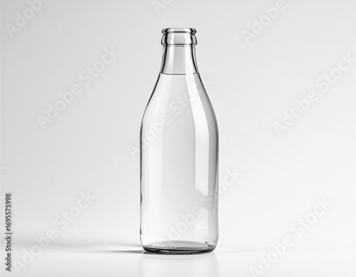 Transparent glass bottle isolated on a plain light background, high-resolution studio photography style mockup