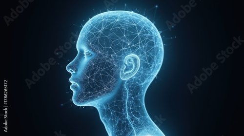 Transparent human head profile showing a tangled, glowing neon line.