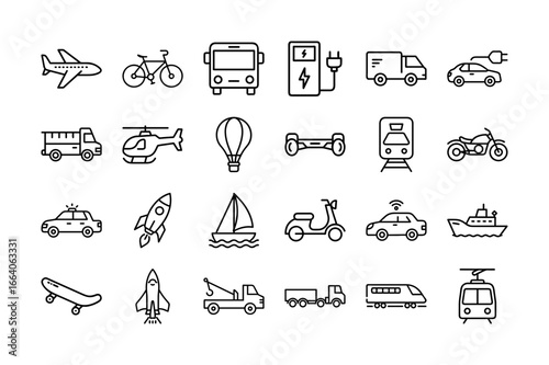 Transportation Advanced Vector Icon Sheet For Cars Bus Train Airplane Vehicle Logistics Mobility Travel