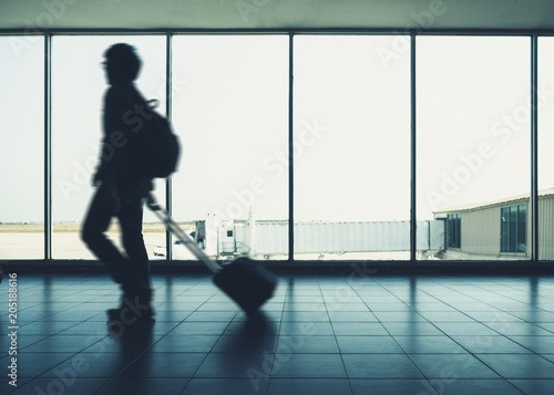 Traveler walking with Luggage arrival Terminal Airport People Travel concept