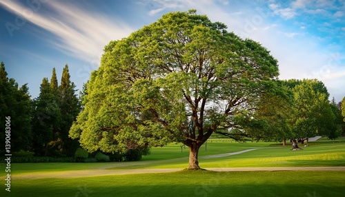 tree, park, vibrant, high-coloured, dynamic, bold, striking, radiant, modern, natural, serene, lush, tranquil