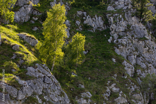 Tree on the rock. A tree that grew on a rock. Sunlight on the branches of a tree