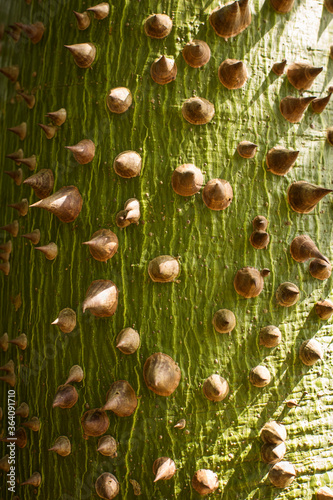 Tree with spikes in forest. Sandbox tree..