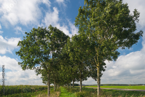 Trees along a field with corn
