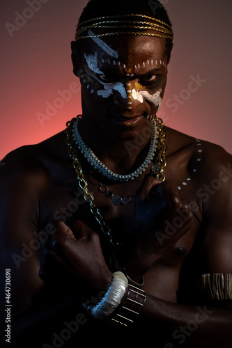woman, dark, black, face, person, man, fashion, people, model, guy, beauty, photogenic, hat, hair, evil, style, body, chain, 1, naked, looking, posing, studio, boy