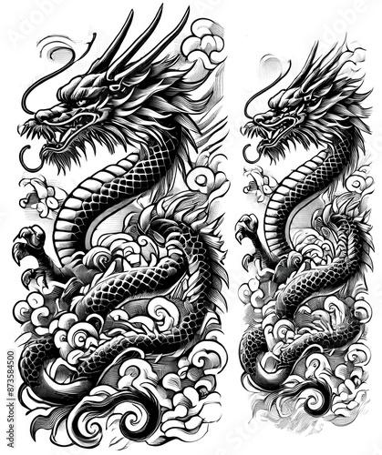 tattoo, dragon, design, illustration, decoration, art, pattern, floral, silhouette, vintage, monochrome