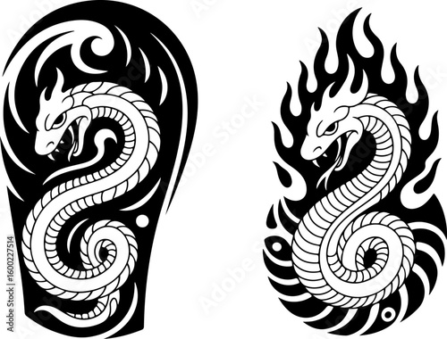 tribal tattoo, dragon tattoo, skull and rose, tattoo design bundle