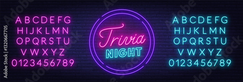 Trivia Night neon sign on dark background. Text Game Light announcement logo.