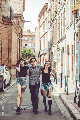 friendship, love, attitude, luck, walk, cap, behaviour, wellness, whole, outside, summer, woman, man, harmony, hipster, insouciance, joyful, daytime, leisure, sunglasses, short, fashion, organic, walk, city landscape, european, fun, walk, acquaintance, street, alley, enjoy, feeling, trio, tattoo, city, vacancy, weekend, sideview, euphoria, excitement, blossoming