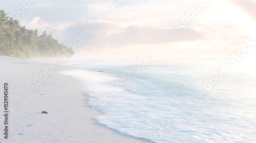 beach, ocean, sunrise, tropical, serene, coast, sand, water, sea, wave, horizon, palm, tree, island, sky, cloud, morning, light, landscape, nature, shoreline, foam, idylli, white, tranquil, paradise, travel, vacation, sun, seascape, turquoise, clean, beautiful, scenery, calm, relaxing, dreamy, peaceful, exotic, coastline, leisure, holiday