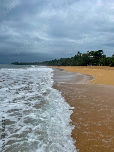 beach, tropical, coast, caribbean, shore, sand, wave, ocean, sea, water, foam, surf, sky, blue, cloud, sunny, day, nature, landscape, travel, vacation, paradise, tide, coastline, outdoors, palm, tree, jungle, green, horizon, tranquil, natural, summer, warm, seascape, costa, tour tourism, central america, nobody, empty